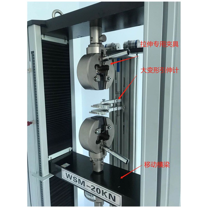 5. 變形測量:主機(jī)高精度光電編碼器測量,還可以配大變形測量裝置,測量伸長率和彈性模量的精確度。
