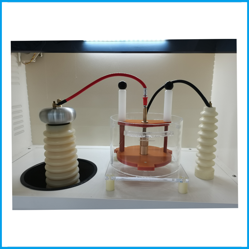 本設備主要由:觸屏控制系統、藍牙通訊系統,升壓系統(高壓變壓器)、測量系統、放電系統、電極、油箱、電極定位架、計算機數據處理系統、軟件等組成