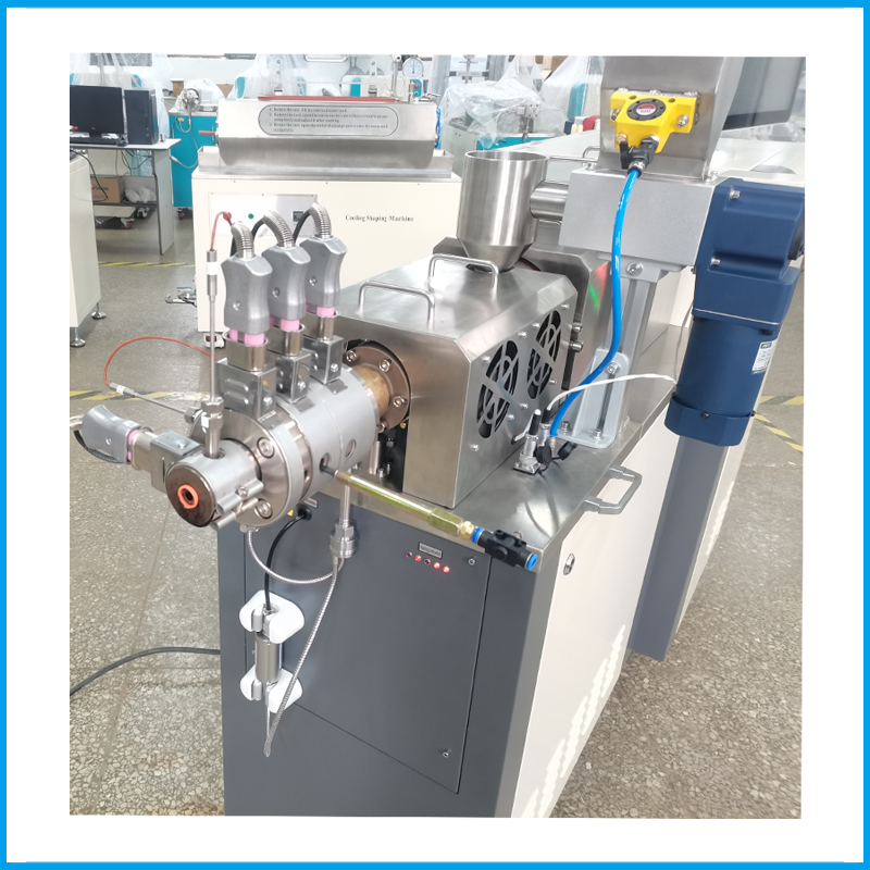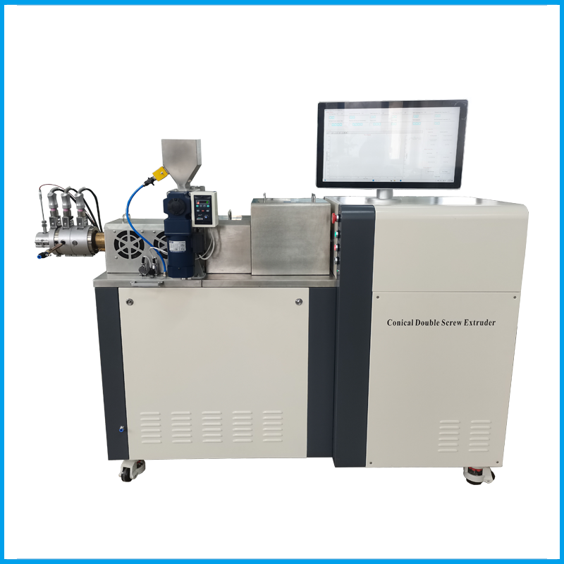 錐形雙螺桿式轉(zhuǎn)矩流變儀由主控單元與錐形雙螺桿單元組成,可在實驗室中模擬錐形雙螺桿擠出機(jī)的生產(chǎn)過程。輔以不同的模具,可直接擠出板材、管材和異型材等進(jìn)行實驗。